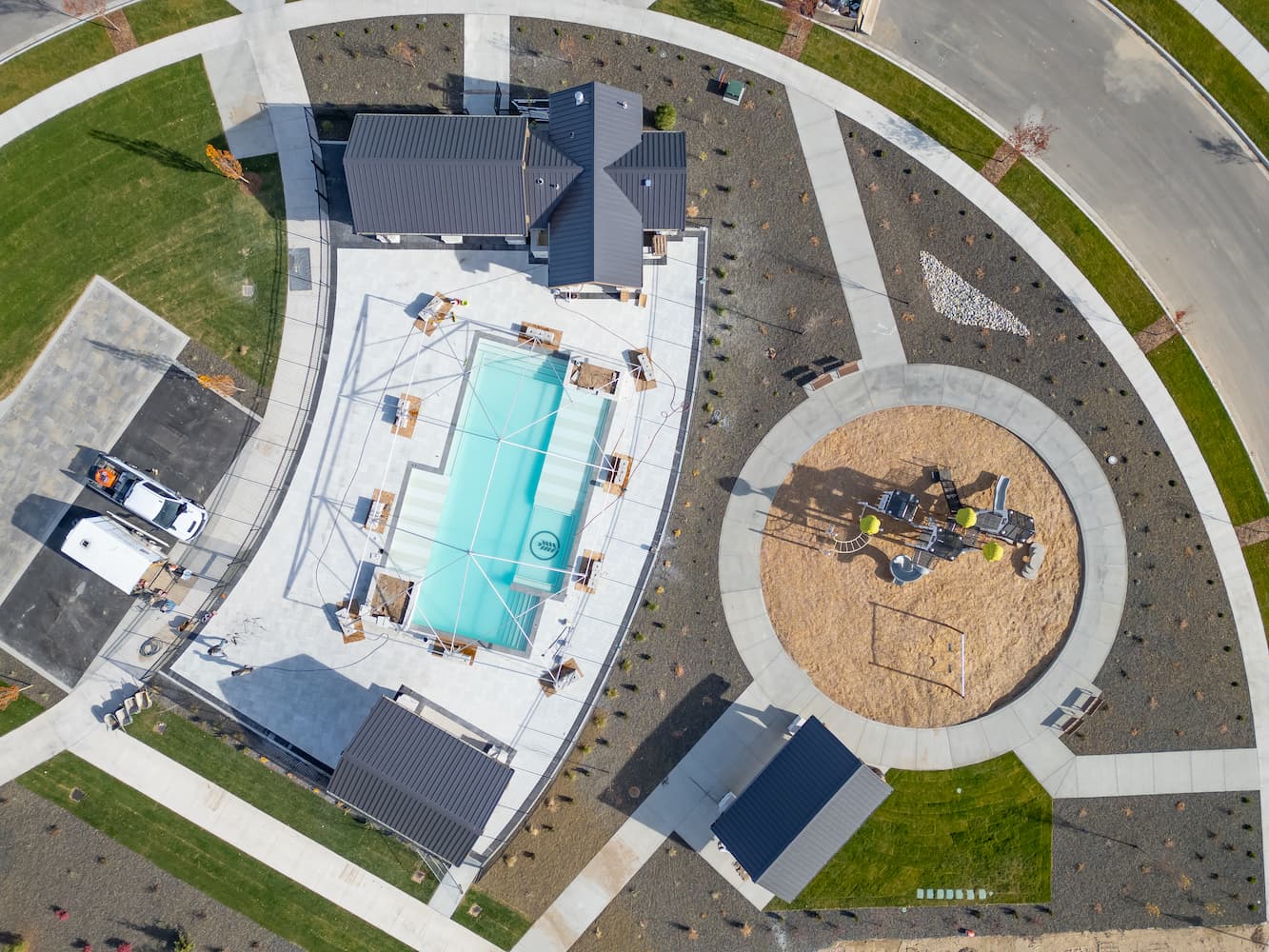 - Three large common areas featuring a swimming pool, playground, and sports courts (bocce ball, tennis, pickleball, half-court basketball)